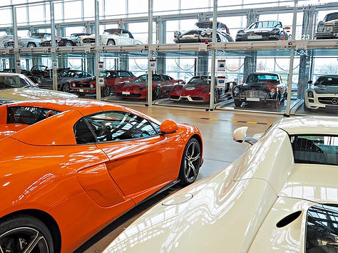 Ziua începe încă din lobby-ul V8 Hotel unde se află un showroom cu service McLaren (de la etajul 1 poți vedea direct cum se lucrează la mașini), iar chiar lângă se află showroom-ul celor de la Bechtel Classic Motors unde vei găsi o colecție impresionantă de modele clasice Mercedes-Benz. Și da, dacă ai bani pe card poți să pleci acasă cu mașina preferată.