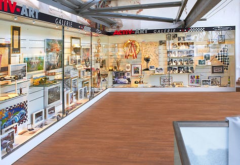 Zona are numeroase spații pentru evenimente, dar există și câteva hale comerciale unde sunt expuse mașini clasice și unde găsești și câteva magazine, printre care și GRANDPRIX ORIGINALS. Și de aici poți pleca cu mașina preferată acasă, dacă ai fonduri suficiente pe card.