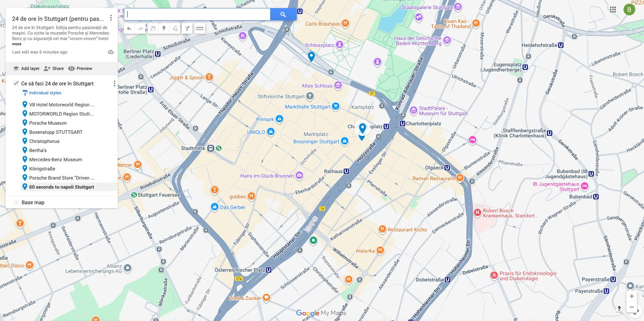 Cu siguranță nu. Eu am ajuns în Stuttgart în primul rând pentru a vizita muzeele Mercedes-Benz și Porsche, dar și pentru că voiam să dorm măcar o noapte în camerele tematice de la V8 Hotel. Așa am descoperit un oraș fascinant, cu multă istorie și locuri de văzut pentru care nu sunt suficiente 24 de ore.